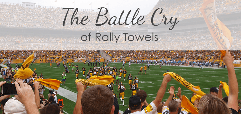 The rally towel is an item of team merchandise that hardcore fans hold up and wave for all to see at sporting events. As a fan ritual, the rally towel dates back to the mid 1970s, when a unique piece of paraphernalia dubbed the “Terrible Towel” originated at Pittsburgh Steelers games.