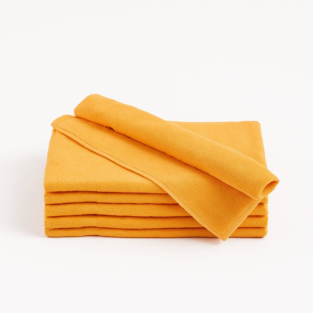 Our orange towels, made from 100% cotton, deliver the durability and reliable performance that businesses need — all at a budget-friendly cost. Their plush, refined appearance adds a touch of elegance. Other advantages include: