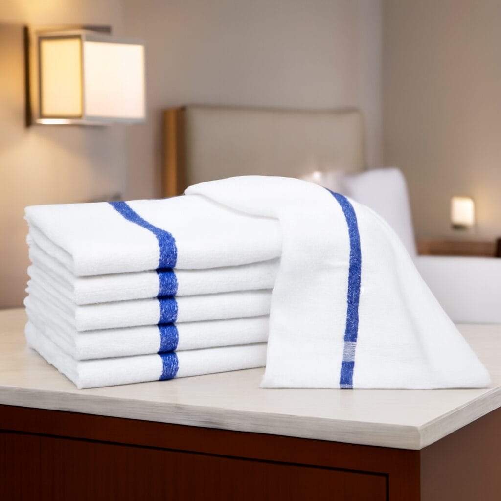 Pick up a dozen of our blue stripe towels today, or a few more dozen to take advantage of our bulk discount prices, and we’ll start processing your order. If you’d like a free sample, just contact us.