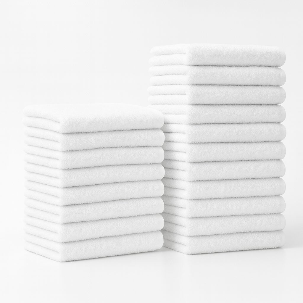 Wholesale Bath Towels 20X40(5Lb) in economy grade optical white. Sold in dozens! These towels will get the job done. Popular with gyms, schools, workout etc.
